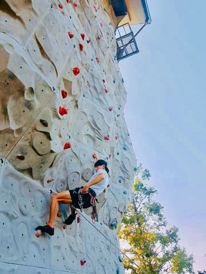 클라이밍은 기울어진 벽면에 몸을 가깝게 붙이고 홀드(손잡이)를 잡아 위로 올라가는 행위를 반복한다.