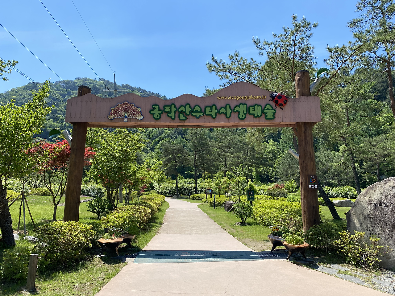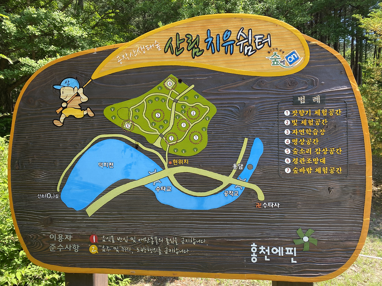 산행 코스는 수타사 주차장 - 수타사 - 산소길 - 귕소 - 출렁다리 - 공작산수타사생태숲 - 수타사로 다시 돌아오는 약 2시간 코스.