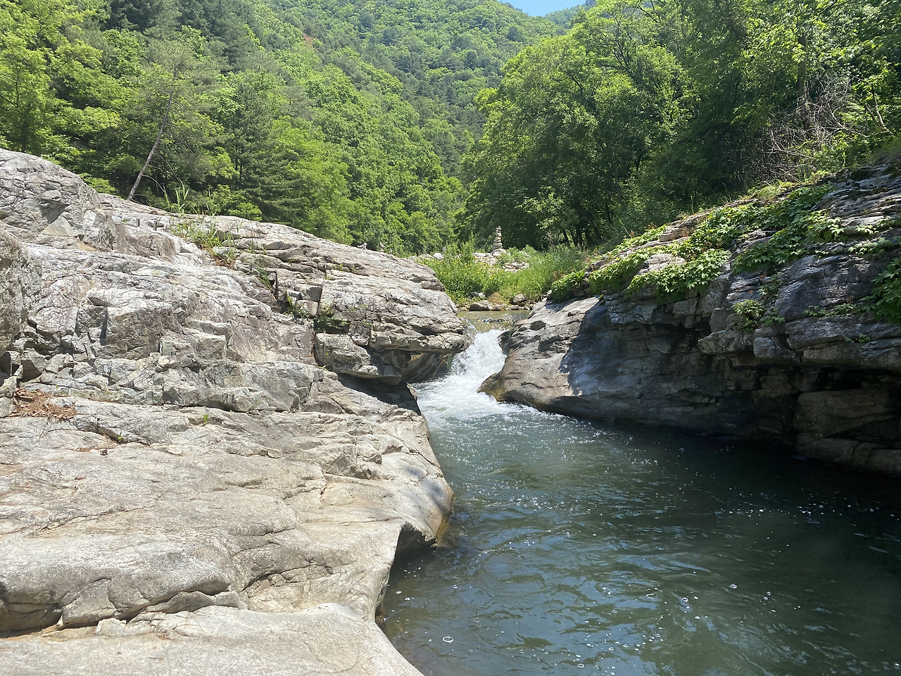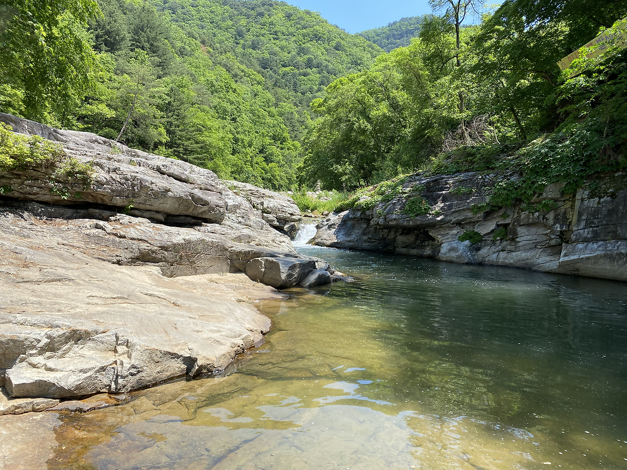 계곡 물은 그리 맑아 보이지 않았다. 유속도 빠르지 않아 시원함을 느끼기엔 부족했다.