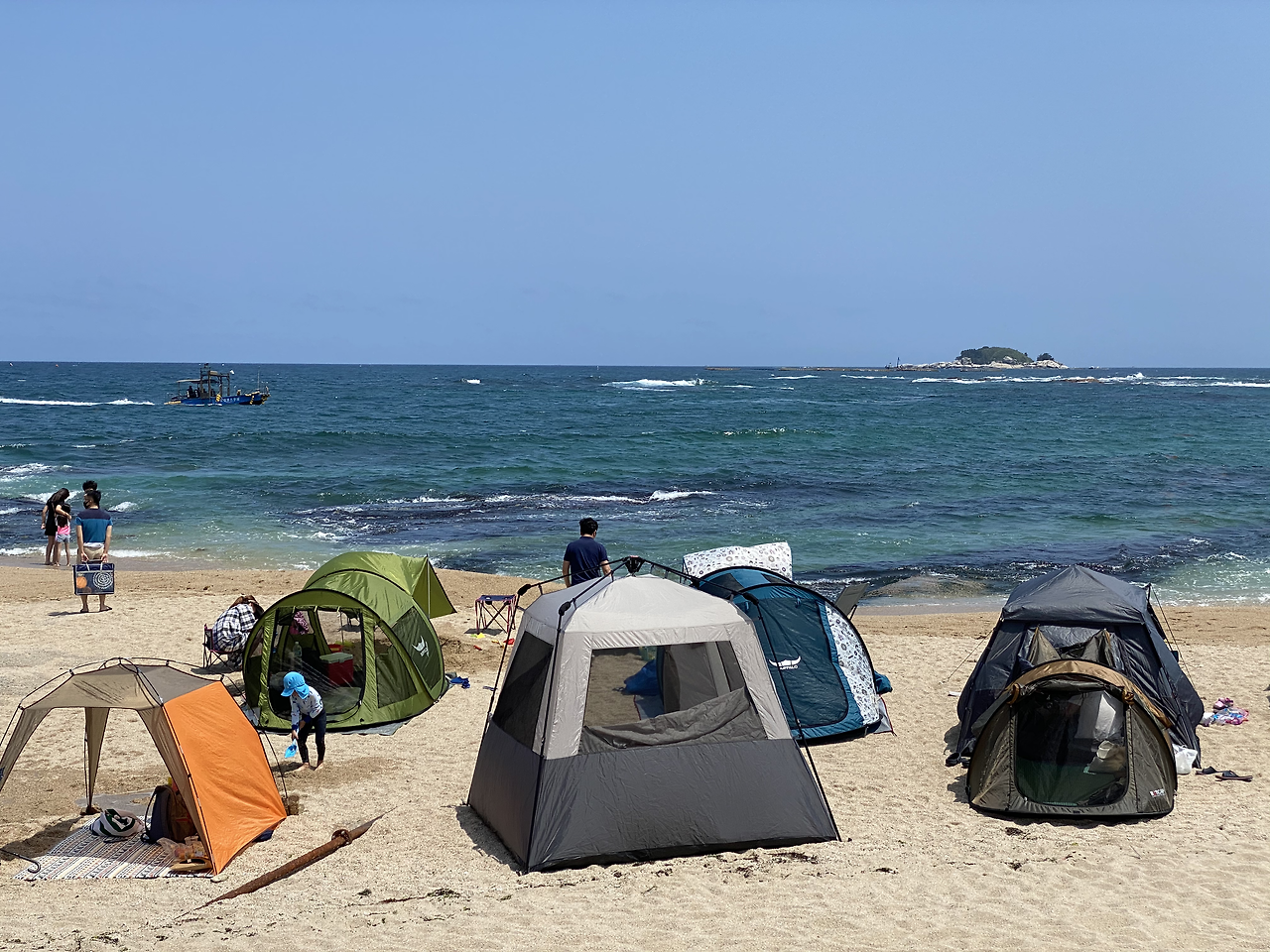 해변에 적지않은 텐트가 보였다. 아이들은 얕은 바닷물에 몸을 담그며 물놀이를 즐긴다. 아빠는 방파제 위에서 낚시대를 드리우고 멍하니 바다를 바라본다. 엄마는 텐트 그늘에 앉아 미리 준비해 온 음식을 펼치고 있다.