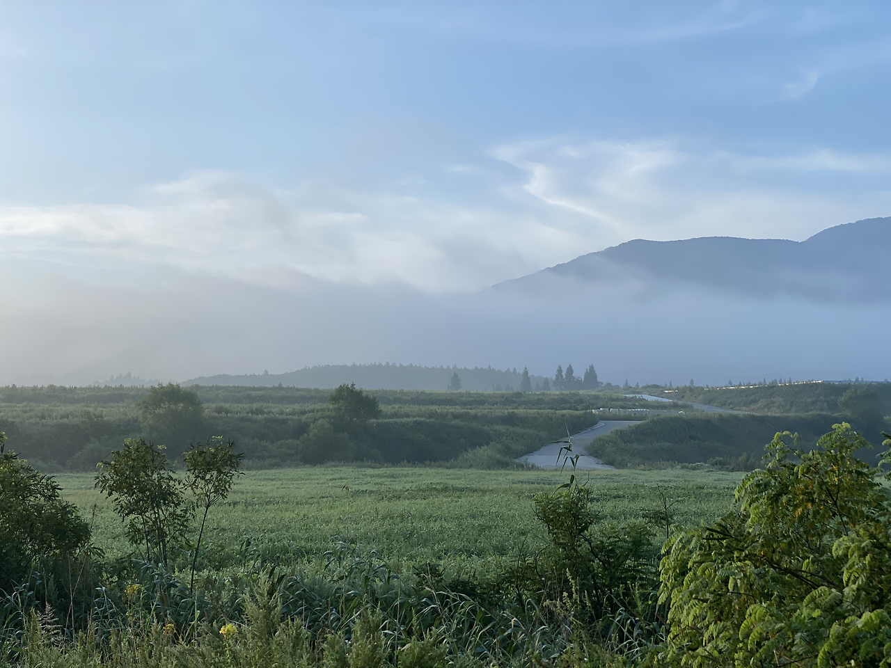 무겁지 않게 내려앉은 안개를 바라보며 맑은 공기를 깊이 들이 마실 수 있다.