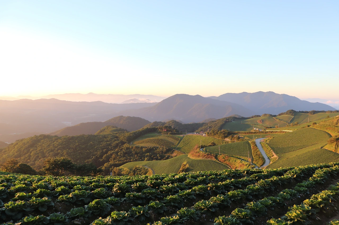 숙소에서 새벽 4시 30분에 일어나 좁고 구불구불한 오르막 길을 달려 5시 15분경 '안반데기 일출전망대'에 도착했다. 새벽 산 공기가 차갑지만 춥지는 않았다.