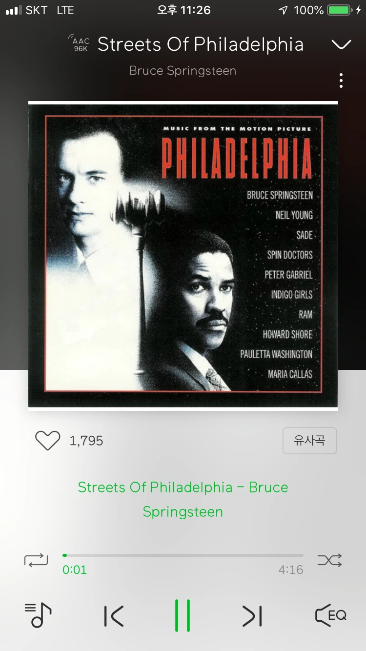 진보적 가치를 노래하는 뮤지션 Bruce Springsteen이 담담한 목소리로 이야기하는 Streets of Philadelphia를 들으며 나 자신부터 타자에 대한 벽을 누그러트리자고 맹세합니다. 코로나로 인해 굳게 닫힌 문을 조금씩 열어가고 싶어요.