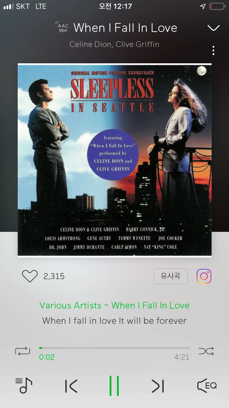 이 영화의 주제곡 When I Fall in Love는, 초등학생 때 선물받은 영화음악 컴필레이션 앨범에 수록되어 무한반복하며 들었던 노래에요. 로맨스 영화 주제곡의 고전이 된 곡인데, 들을 때마다 제 가슴이 조금씩 쿵쿵거립니다. 오늘은 이 노래를 부르며 잠못이루는 밤을 보내야겠어요