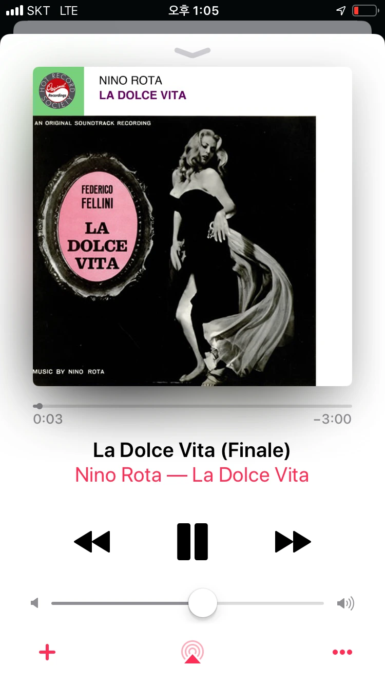 이탈리아 영화음악의 거장 니노로타는 언제나 펠리니 감독의 작품을 아름답게 수놓았는데요. 장난기 어리고 풍자가 가즉하면서도 따뜻하고 섬세한 선율이 인간을 바라보는 펠리니의 시선을 닮았다는 생각이 듭니다. 모든 것들이 지나가고, 사람들이 여전히 파티에 들떠있을 때 인생에 이제 아무것도 남은 것이 없다고 느끼며 멍하니 앉아있는 마르첼로를 비추며, Finale가 흐릅니다