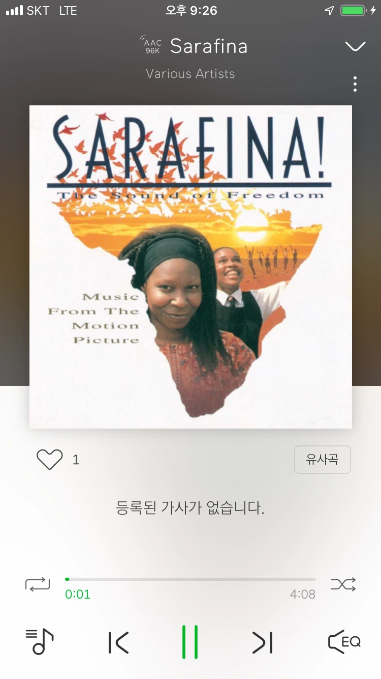 남아공 전통음악을 기반으로 한 에너지 넘치는 ost는 고단한 현실을 음악을 통해 이겨내고자 하는 의지를 표출합니다. 영화 시작 사라피나를 외치는 노래는 백인들의 억압이 자유와 평화의 열망을 짓밟을 수 없다고 노래하는 것만 같습니다. 출장 때 경유만 했던 남아공 요하네스버그. 언젠가 아파르트하이트 박물관에 가서 그 당시 끔찍했던 역사를 눈으로 확인하고 싶어요.