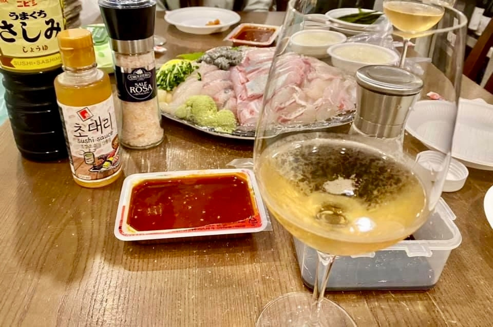 풍부한 건포도, 꿀, 살구 향이 입 안을 가득 채우며 매우 농축된 달콤함을 보여준다. 이 와인은 스시와의 궁합보다는 오히려 크림 브륄레 같은 디저트와 더 잘 어울릴 것 같았지만, 은은한 달콤함이 초밥소스와 감태를 감싸며 독특한 경험을 느끼게 해 주었다.