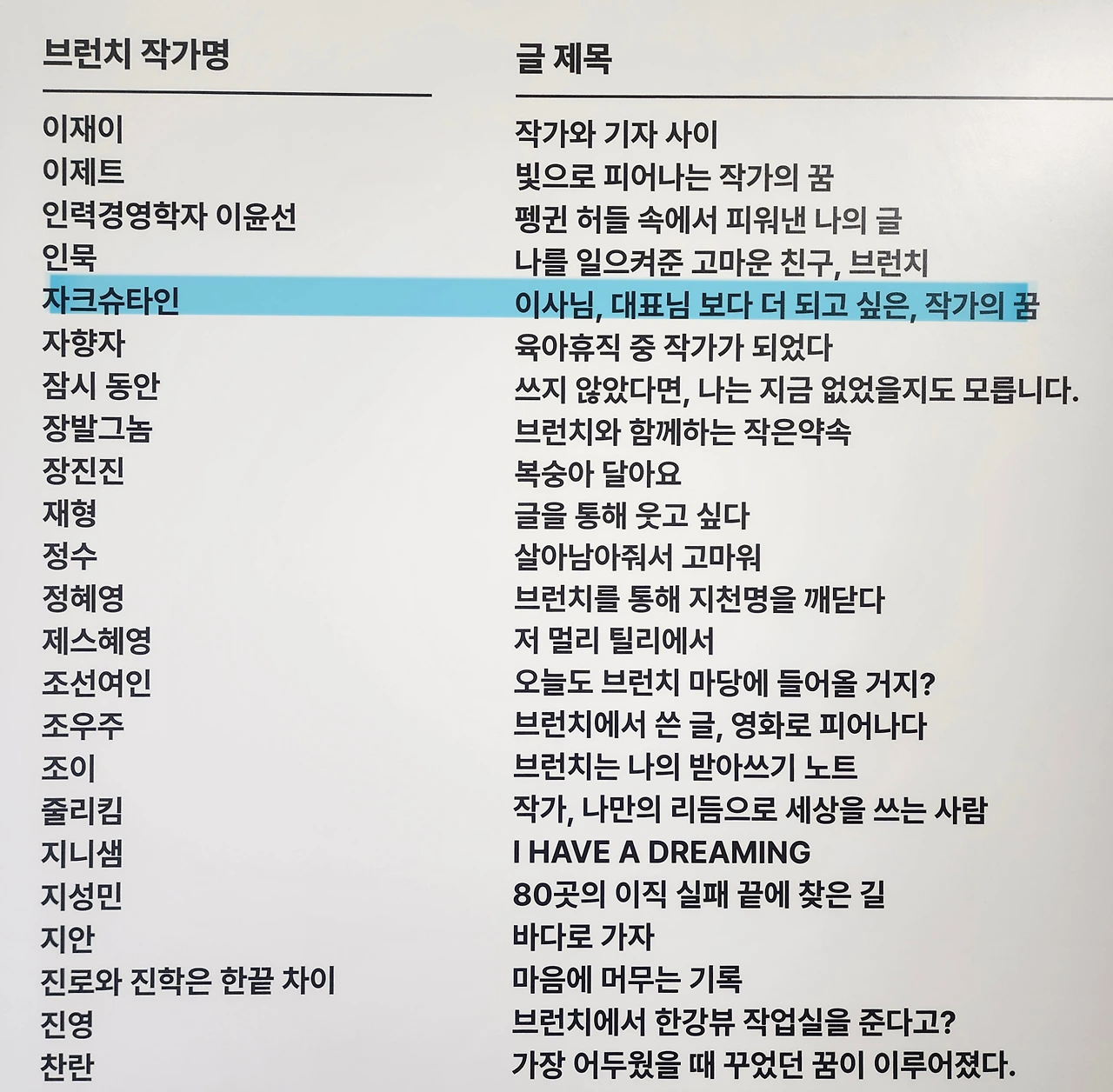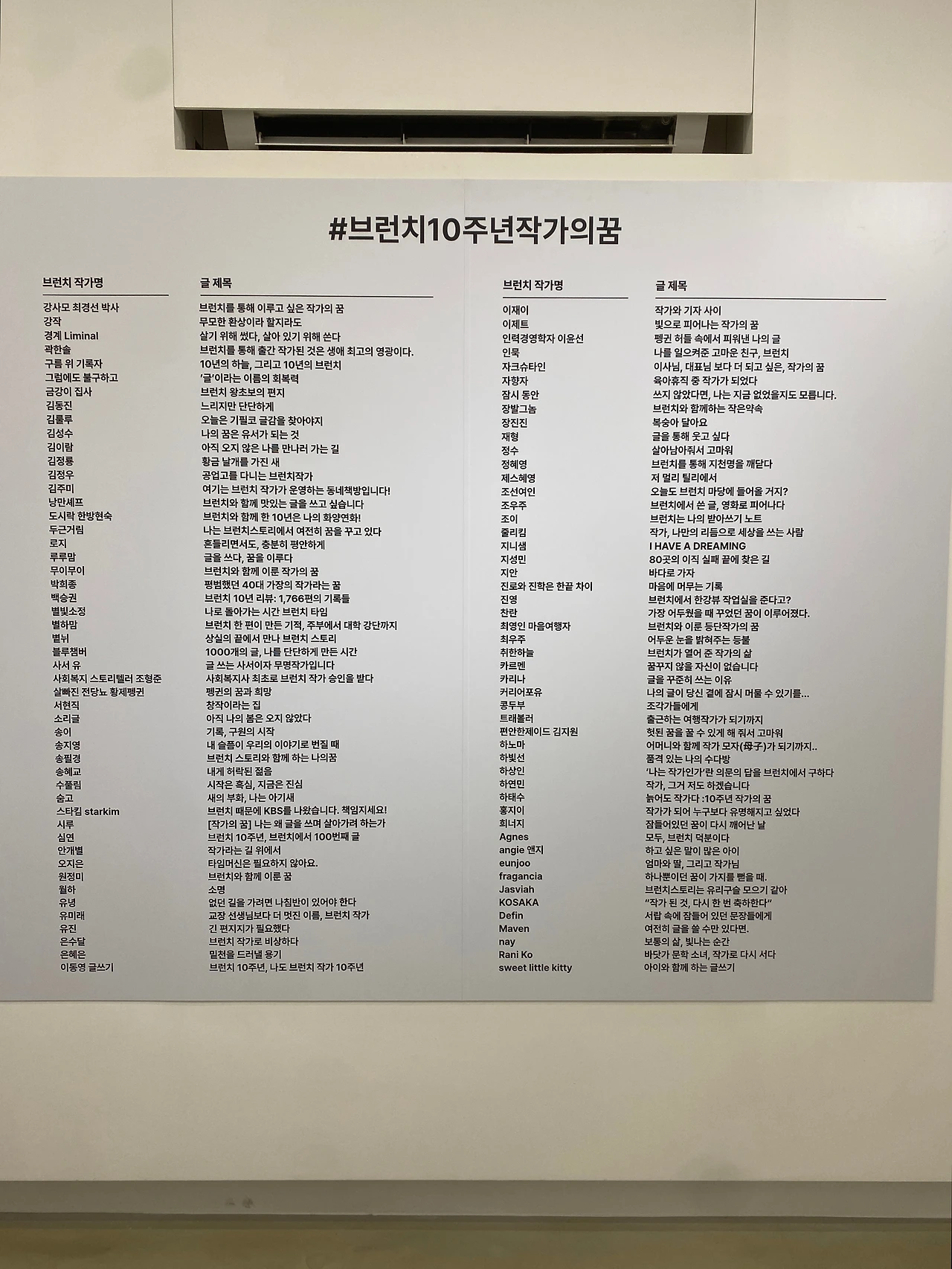 더불어 매년 진행되는 브런치 출판 프로젝트를 통해 10년 동안 자신의 저서를 출간하며 작가의 꿈을 이룬 분들과 그 책들에 대한 소개도 빼곡히 볼 수 있었다.