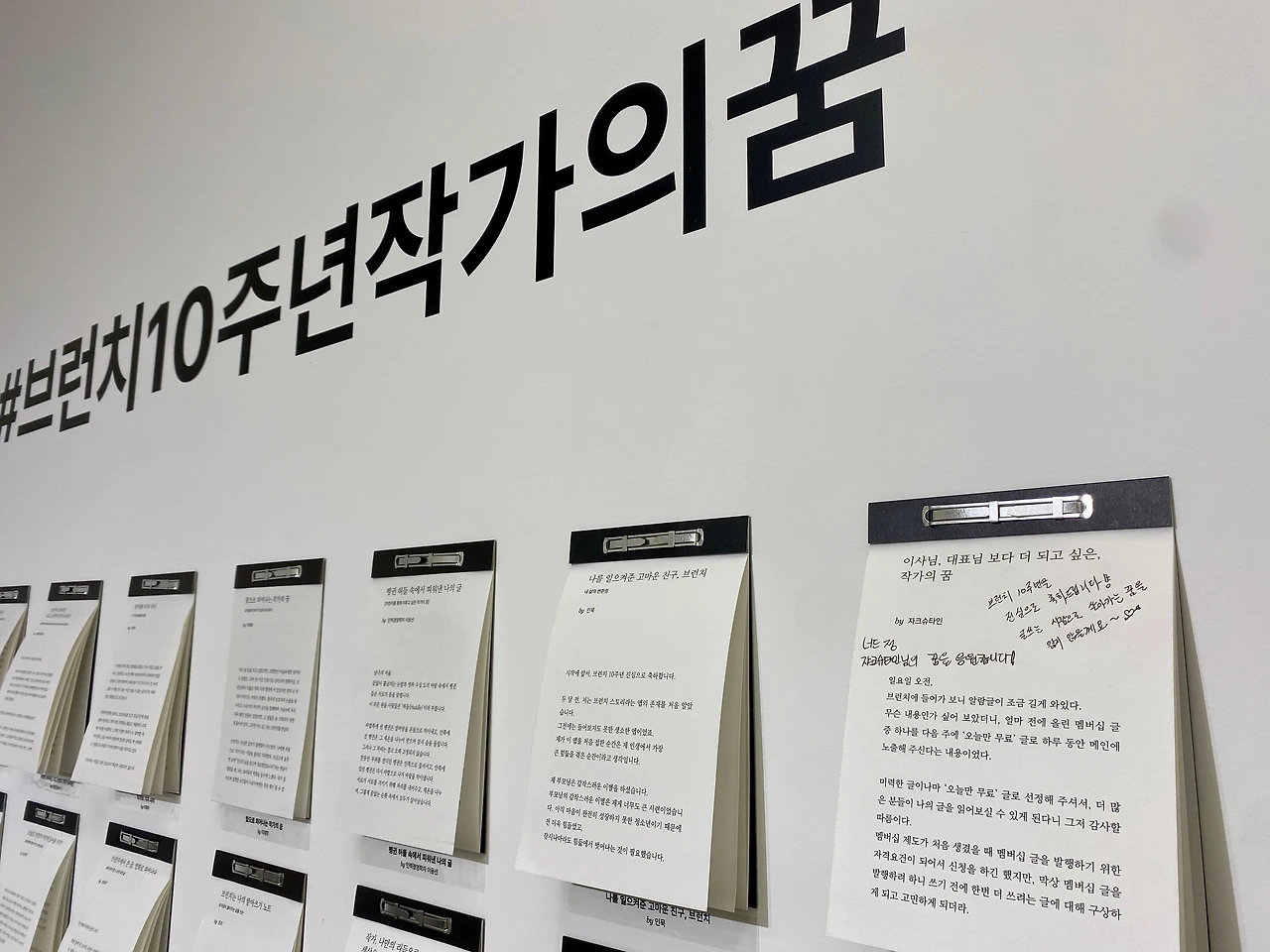 브런치 작가들에게 ‘작가의 꿈‘을 주제로 응모받아 선정된 글들을 전시하며, 10년이라는 긴 세월 동안 부단히 한 길을 달려온 브런치 플랫폼의 탄생과 발전, 변화와 고민에 대한 여러 가지 정보와 내용을 접할 수 있는 자리였다.