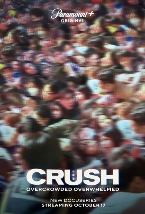 "크러쉬(Crush)"는 2022년 10월 29일 서울 이태원에서 발생한 압사 참사를 집중 조명한 Paramount+ 의 오리지널 2부작 다큐멘터리이다. 씨잇나우스튜디오스(See It Now Studios), 올라이즈필름(All Rise Films) 등이 공동 제작했고, 2017년 일어난 라스베이거스 총기 난사 사건을 다룬 다큐멘터리 '11분'(2022)을 연출한 제프 짐발리스트(Jeff Zimbalist)와 스튜 슈라이버그(Stu Schreiberg)가 제작자로 참여했다.