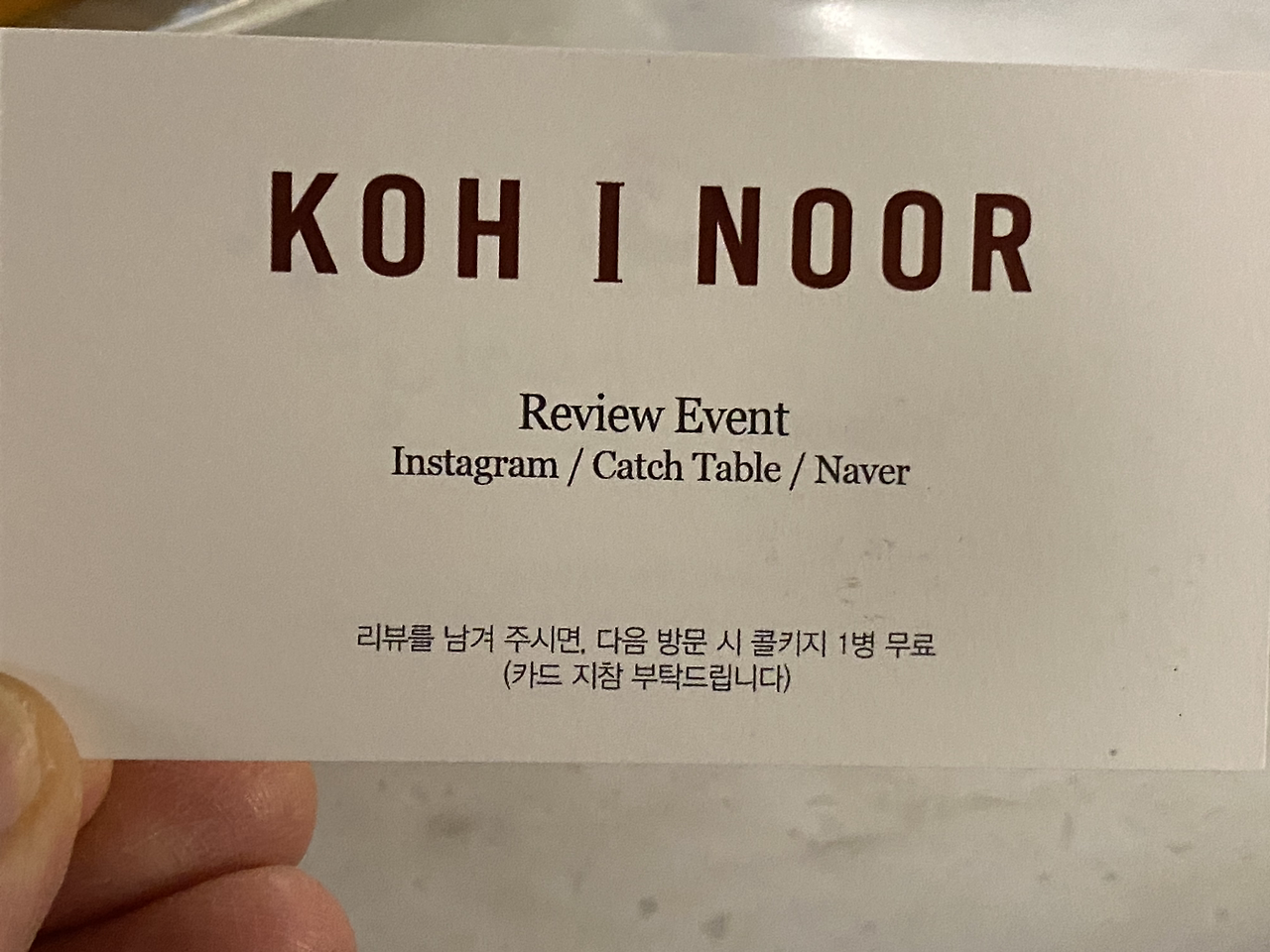 마포구 와우산로에 위치한 코이누르(KohiNoor) 홍대점에서 두 병의 와인을 테이스팅 했는데, 이곳이 콜키지 프리였는지는 정확히 기억이 나지 않는다. 다만, 콜프가 아니었더라도 병당 차지(Charge)가 저렴했을 것이다. 콜키지 비용이 비싼 곳에는 굳이 와인을 들고 가지 않기 때문이다.