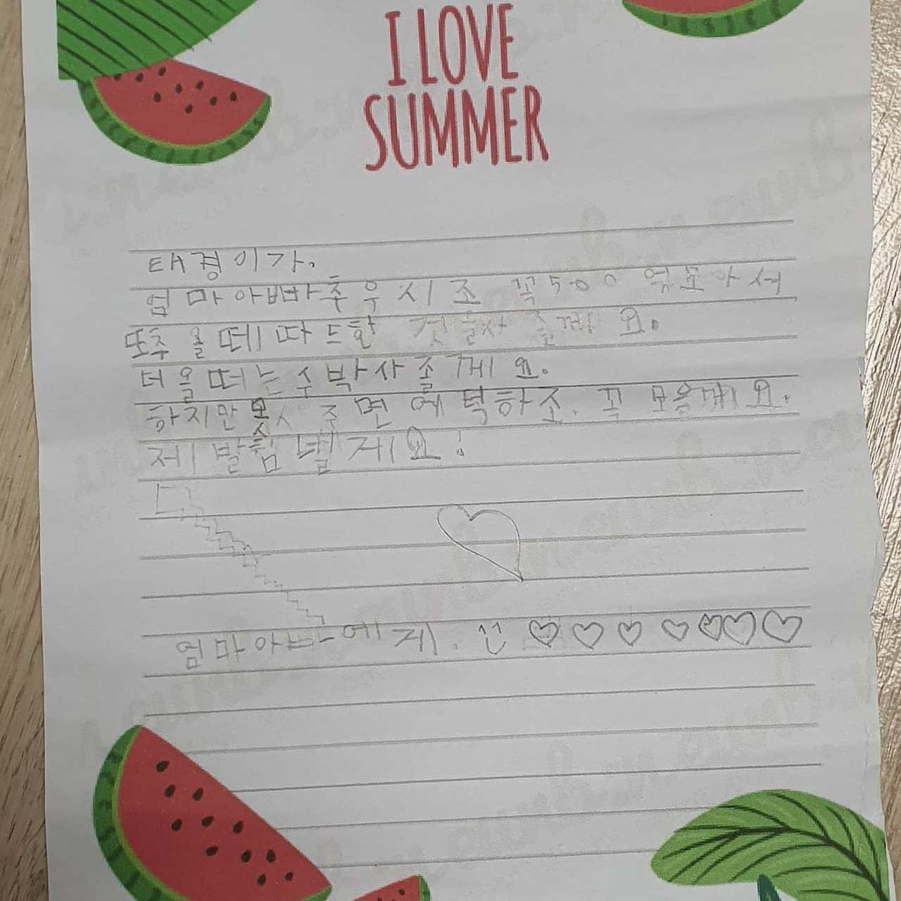 I love summer 라고 씌여진 편지에