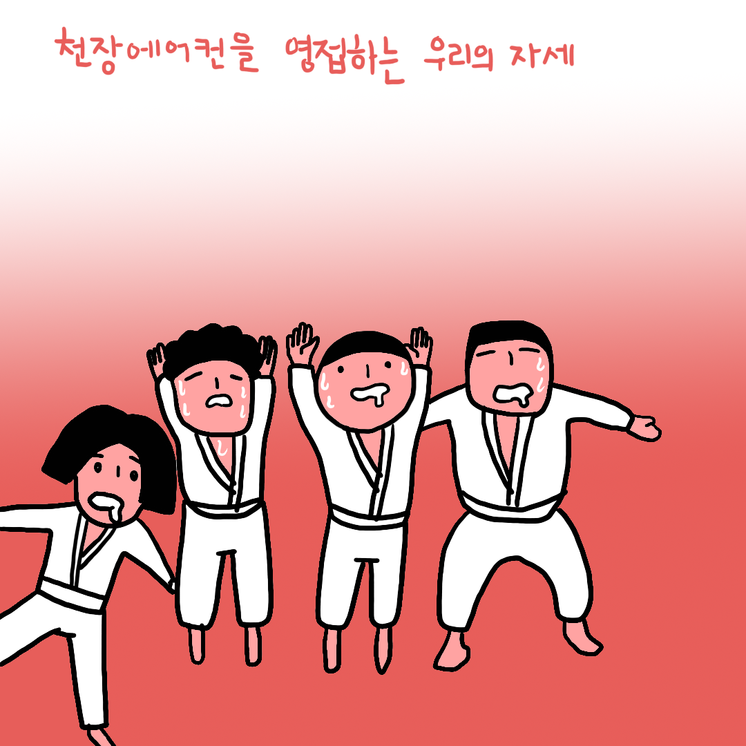 우리 도장은 건물의 7층과 8층 두 개 층을 쓰면서 윗 층은 탈의실과 샤워실이 있고 그 아랫층에 매트가 있는 구조다. 두 개 층은 내부에서 계단으로 연결되어 있고 맨 발로 오간다.
