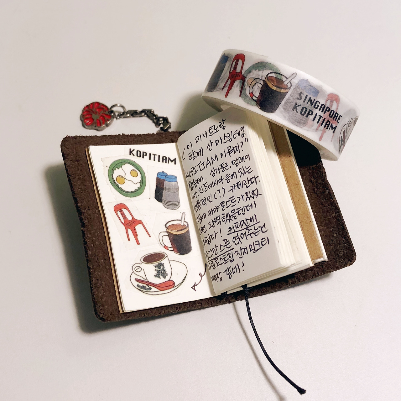 사진 속의 미니 트래블러스노트도 이 문구점에서 구매했습니다. 트래블러스노트 10주년 에디션의 카피인듯 한데, 9천원밖에 하지 않았습니다(정품은 5만원대). 손가락 두 마디 정도의 아주 작은 노트인데, 생각보다 많은 것들을 기록할 수 있어서 싱가포르 여행에 재미를 더해주었어요.