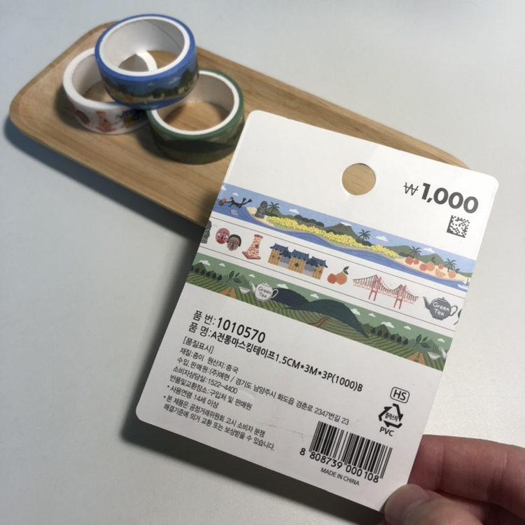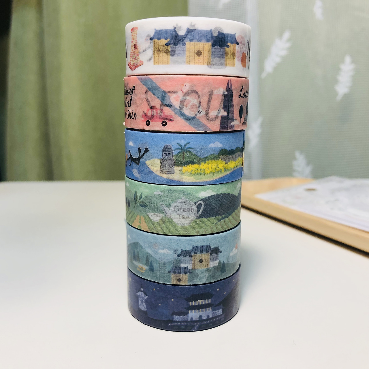 한국의 풍경을 일러스트로 담은 마스킹테이프. 많은 것을 생각하고 싶지 않고 휴식이 필요할 때. 요즘은 언제든 훌쩍 떠날 수 있는 멋진 국내 여행지들에 마음을 빼앗기곤해요. 그런 때 다이소에서 발견한 이 마스킹 테이프들! 서울테마에 이어서 제주도와 보성차밭 테마도 나왔길래 사버리고 말았습니다.