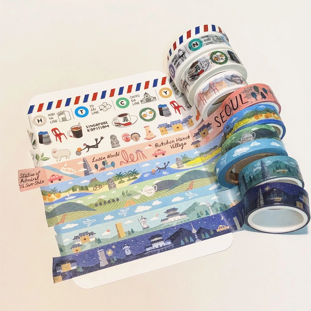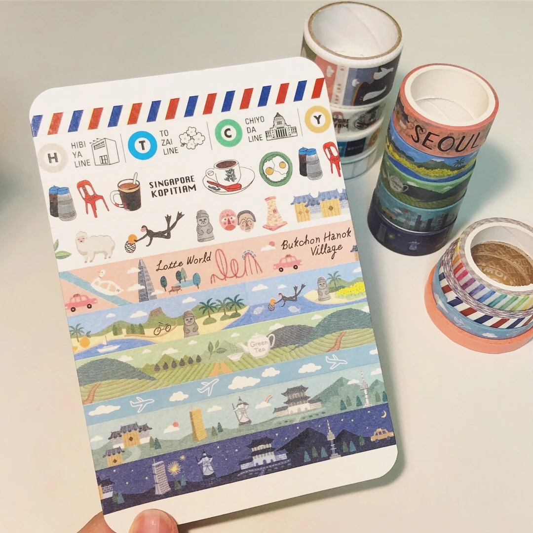 저는 공간을 덜 차지하면서 생활 곳곳에 스며들 수 있는 기념품을 좋아해요. 그런 의미에서 마스킹테이프는 새로운 발견이었습니다. 문구점에서 의외로 쉽게 발견할 수 있고, 많은 풍경이 이 조그만 것에 가득 담겨있다는게 마음에 들었거든요.