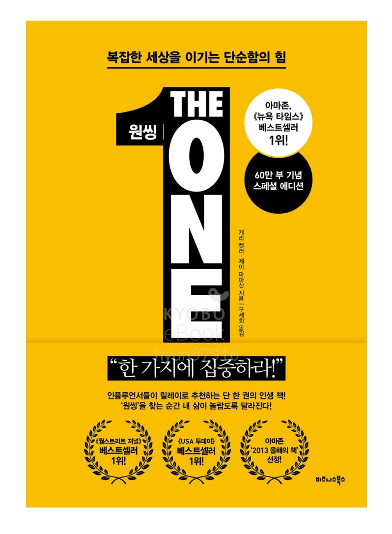 처음 이 책의 제목을 봤을 때, "단 하나에 집중하라"는 메시지가 일반적인 자기 계발서의 진부한 문구로만 다가왔다. 그래서 나는 선뜻 이 책을 펼쳐볼 생각조차 하지 않았다.