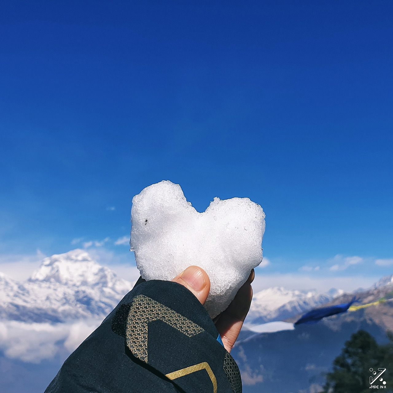 엉뚱한 생각을 하며 도착한 언덕 위는 살랑바람이 분다. 사방이 뚫려 시선엔 막힘이 없고, 쨍하게 푸르른 하늘과 하얀 눈의 대비가 청량하다. 지나치게 매혹적인 자태에 이끌려 손끝이 붉게 물들 걸 알면서도 눈을 만진다. 푹신하게 생겨서는 단단한 게 얼음 결정체에 가깝다. 하트 모양으로 눈을 뭉친다. 욕심껏 예쁜 하트를 만들려고 힘을 주다가 눈 뭉치가 산산이 조각났다. 아빠, 가이드, 포터는 딸의 손장난에 피식 웃는다.