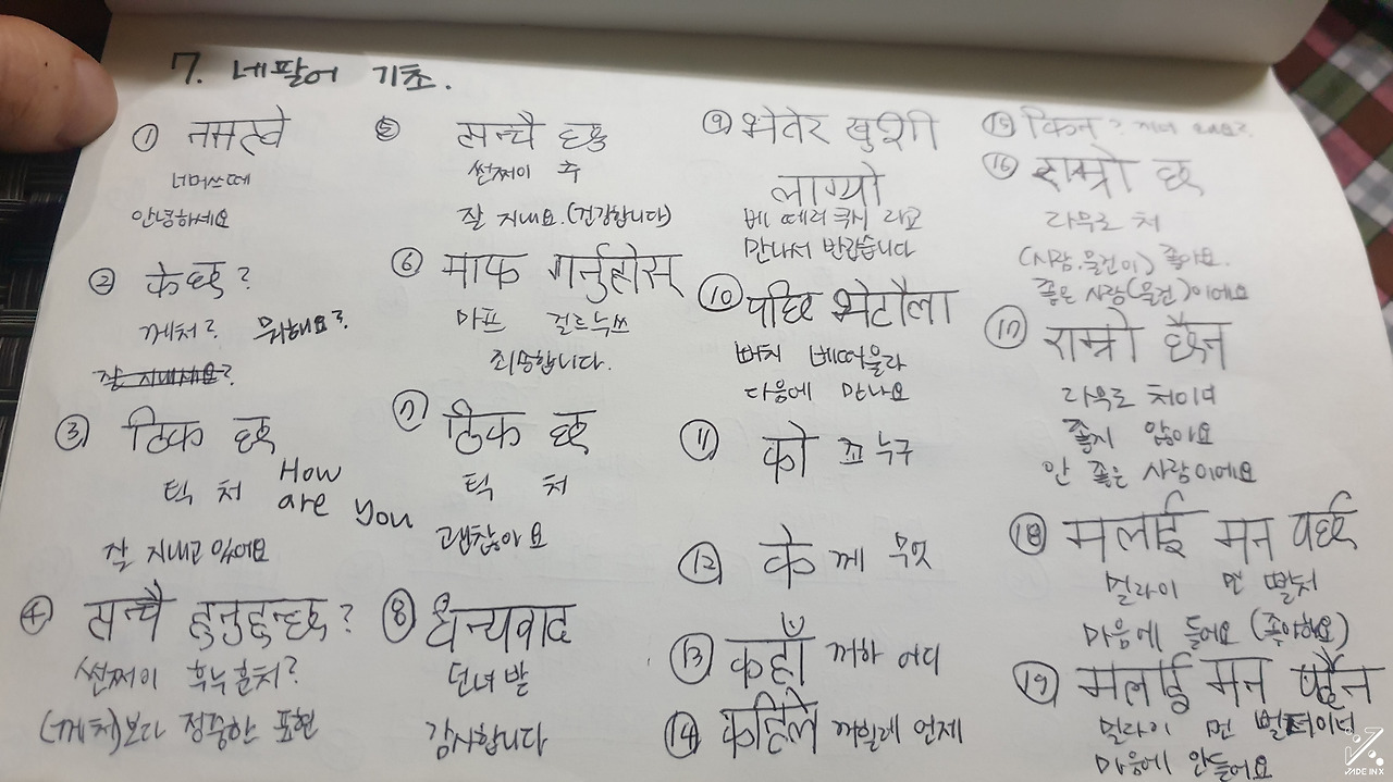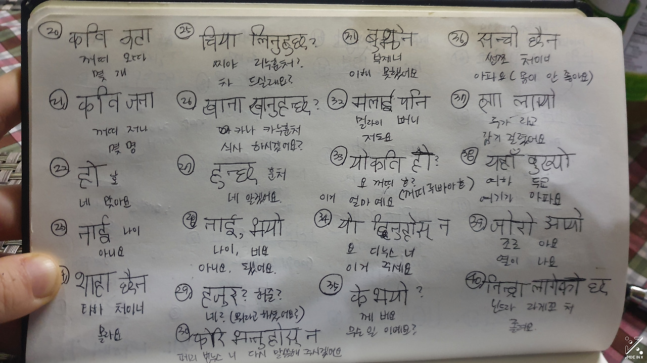 “이거 제가 적어왔는데, 네팔어 좀 알려주세요.”