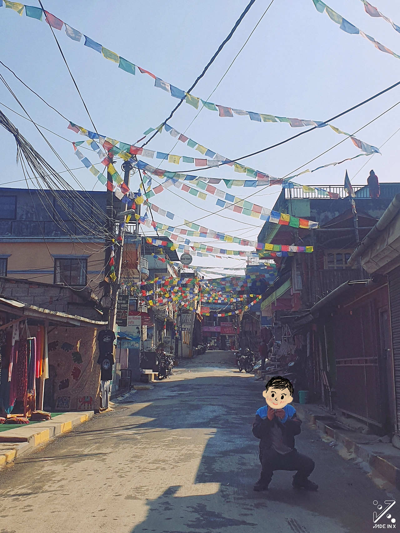 호수를 지나 골목길을 걷는다. 골목 구석구석이 이미 가본 장소다. 트레킹 전 날 갔던 한식당이 있는 거리엔 오색 깃발이 하늘을 메운다. 여행 기간 내내 사진 못 찍는다는 잔소리를 들은 탓에 아빠는 열정적인 자세로 딸을 찍어준다. 딸은 쪼그려 앉아서 휴대전화에 집중하는 아빠가 재밌어서 반대로 사진을 찍는다. 서로를 카메라에 담고 이전에 겪은 경험을 떠올려 대화하며 포카라를 정리한다.