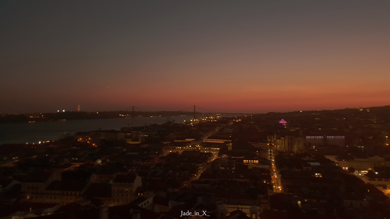 갑작스러운 질문에 당황하셨지만, 감사하게도 허락하셨다. 그제야 마음 편히 일몰을 보고 리스본의 야경을 온전히 느낄 수 있었다. 빼곡히 자리한 빨간 지붕과 비슷한 색으로 물들어가는 노을에 긴장했던 마음이 풀어졌다. 해와 함께 사라진 빛 대신 주황색의 가로등이 거리를 비췄다. 푸른 바다와 은은하게 빛나는 거리는 낭만이 흘러넘쳤다.
