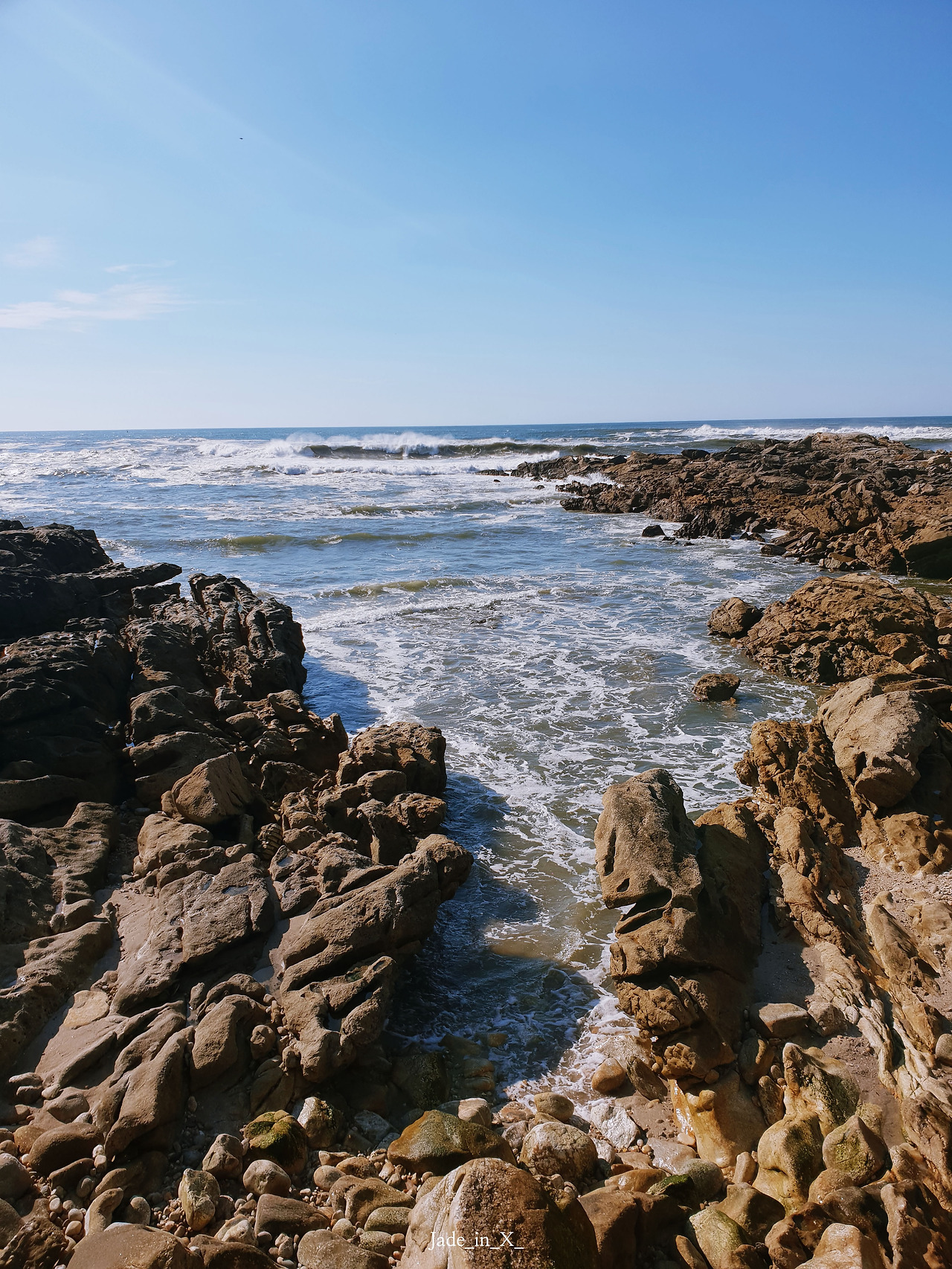 그런 생각도 잠시. 파도에 끊임없이 부딪쳐 깎인 바위와 여전히 제 몸을 부딪혀 하얗게 흐트러진 파도의 압도적인 형세에 넋을 잃는다. 멀리서는 아주 작던 소리도 바로 앞에서 들으니 천둥 못지않게 크다. 빠르게 나비의 꿈을 접고 멀리서 바라보기로 한다.