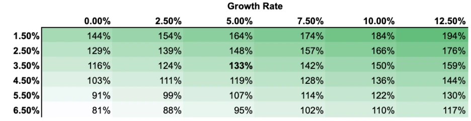 우선 10년치 ROI다. 위에서 쓴 가정을 바탕으로 계산해보았을 때(아래 표 bold부분) 10년간의 ROI는 133%임을 알 수 있다. "과연이게 만족할만한 수치인가?"는 주관적인 요소에 따라 달라지기 때문에 판단은 개인에 맡겨야겠다.