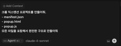 바이브코딩을 시작하며 내가 가장 먼저 한 일은 GPT에게 ‘Cursor로 크롬 익스텐션을 만들려면 어떤 프롬프트로 시작해야 해?’라고 묻는 것이었다. 그리고 그에 대해 얻은 답을 Cursor에 그대로 집어넣었다.