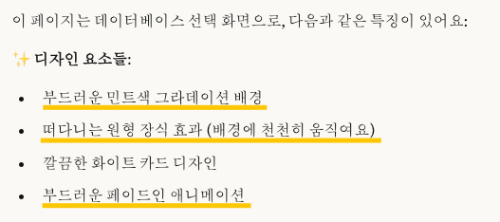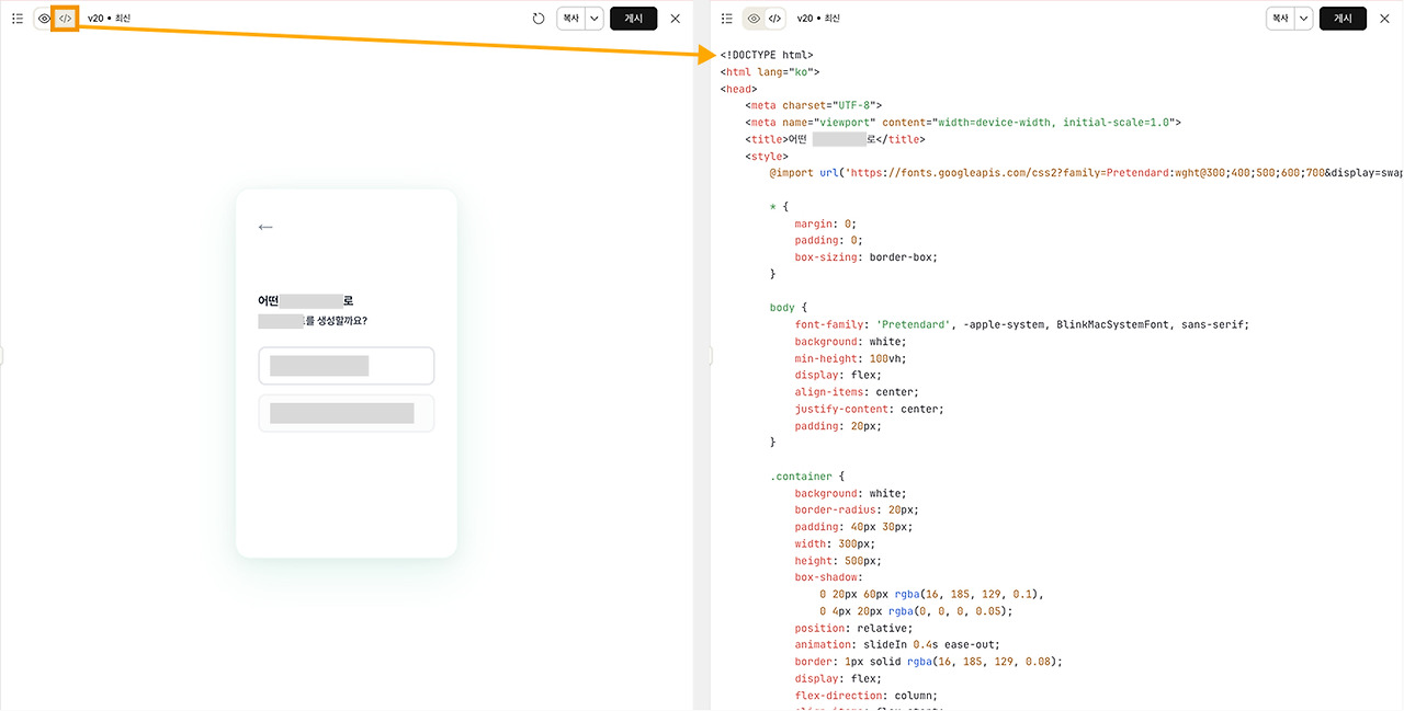 이런 것들은 모두 클로드가 임의로 만든 디자인 요소이다. 이렇게 실제 서비스에 들어가지 않을 요소가 포함된 코드는 꼭 미리 확인하고 제거해두자.