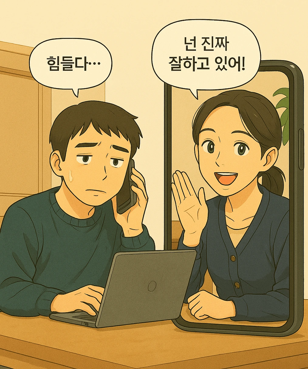 와이프는 묵묵히 들어주며, “그래도 잘하고 있어”라고 말해주는 쪽이다.