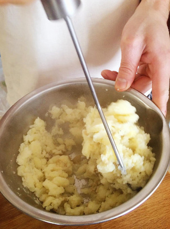 깨끗하게 씻은 감자를 삶아서 잘 으깨준다.
