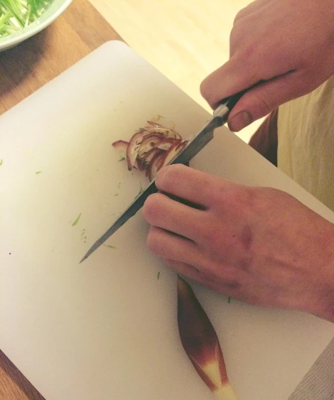 늘 주인공이 될 수 없었던 팽이버섯의 밑동(아랫부분)을 사용해 하나의 요리를 만들어 낸다.