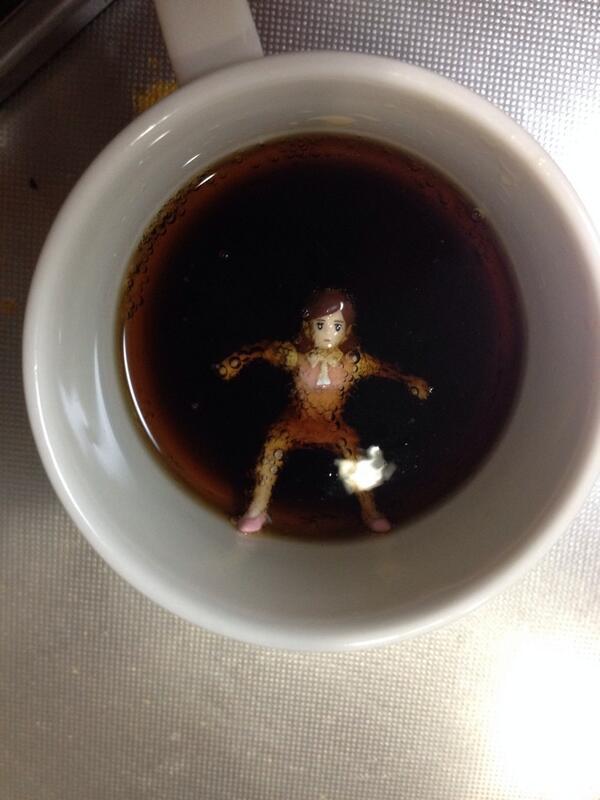 일본 마쵸 캐릭터의 대명사인 <고르고13>의 고르고도 컵 위에 올라가면 그냥 귀여운 아저씨일 뿐이다.