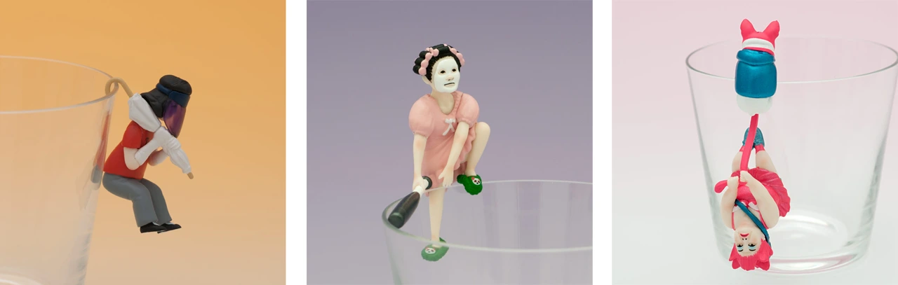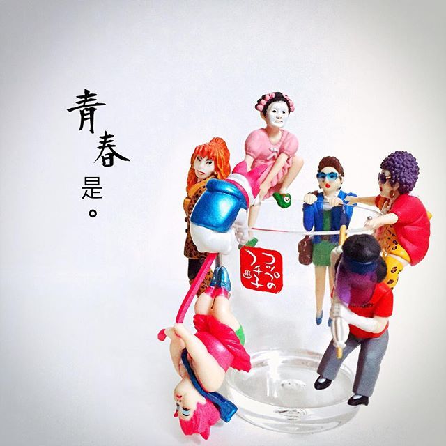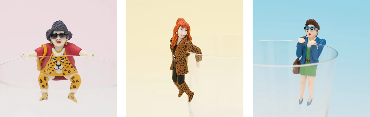 패션이 화려한 것으로 유명한 오사카의 아주머니들도 컵 위에 올라가고 싶었던 것 같다. '오사카 아줌마' 버젼.