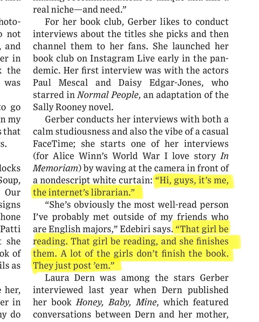 2020년에 시작된 온라인 독서 클럽으로. 이 클럽은 Kaia Gerber와 그녀의 친구 Alyssa Reeder가 주도하여, 주로 인스타그램 라이브를 통해 독서 추천을 공유하면서 시작되었다.