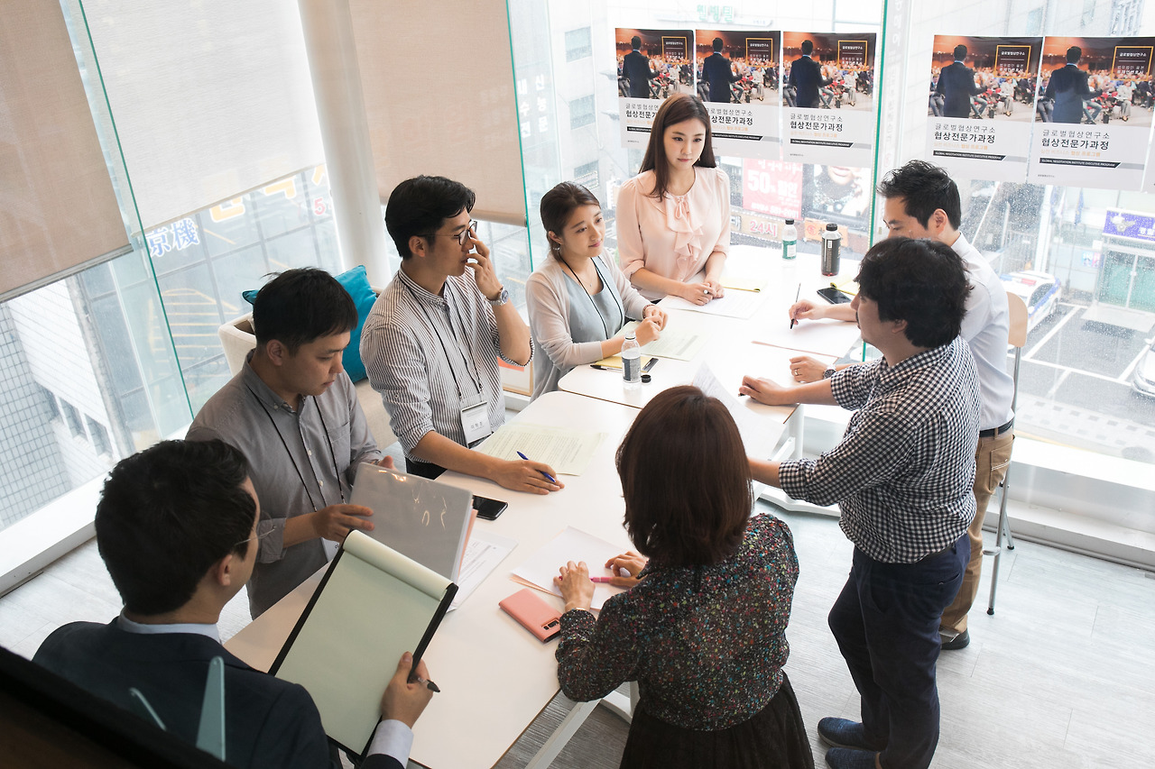 비즈니스협상전략그룹의 협상전문가과정은 이틀, 총 16시간 동안 16명의 실무 협상 담당자분들과 함께 강남역에 위치한 교육장에서 진행됩니다.