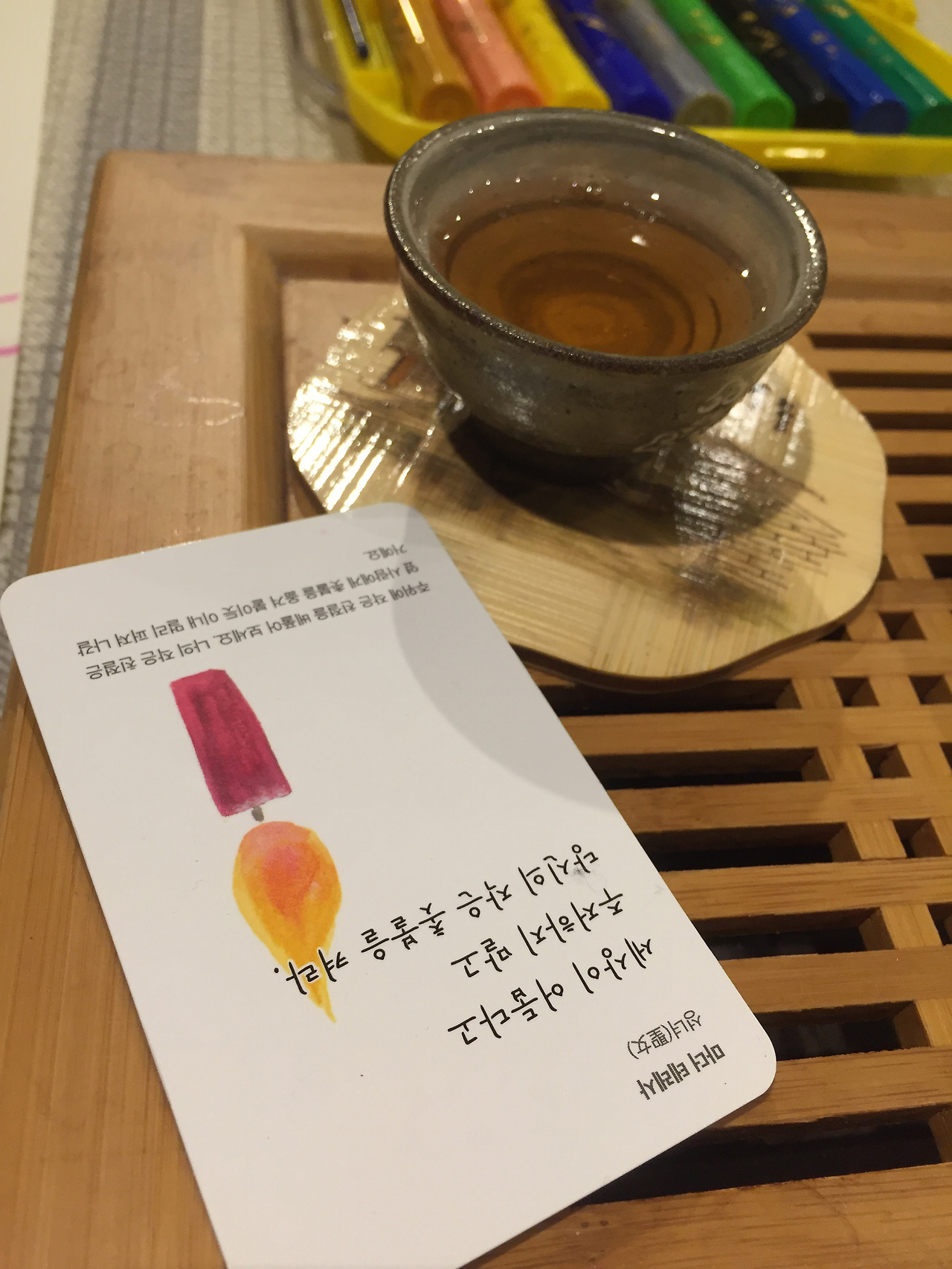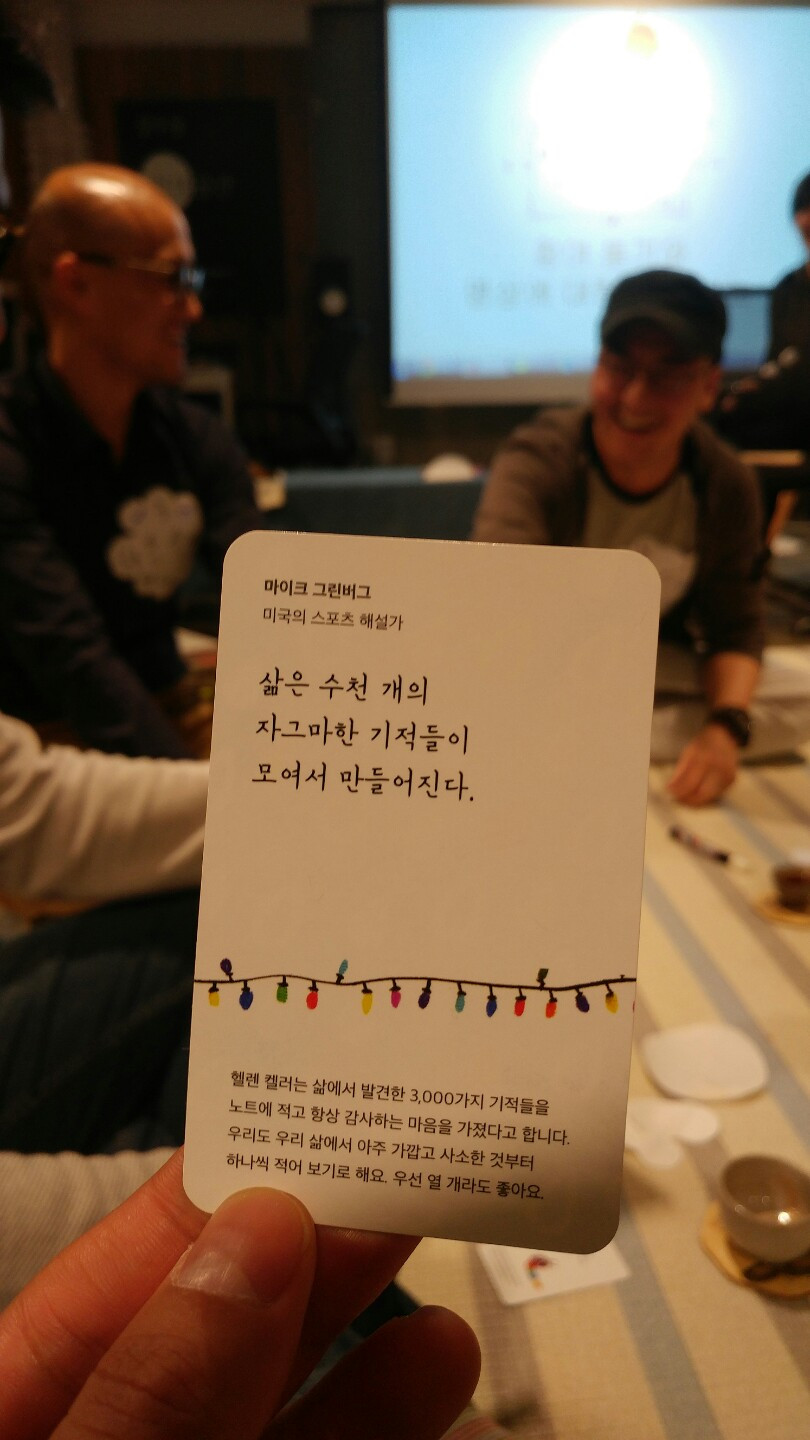 명상글이 적혀있는 카드를 꺼내어 읽고,