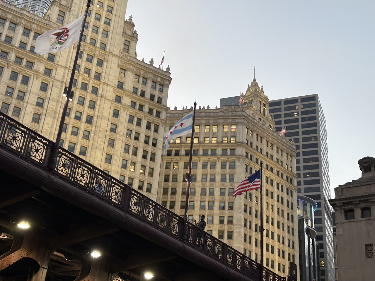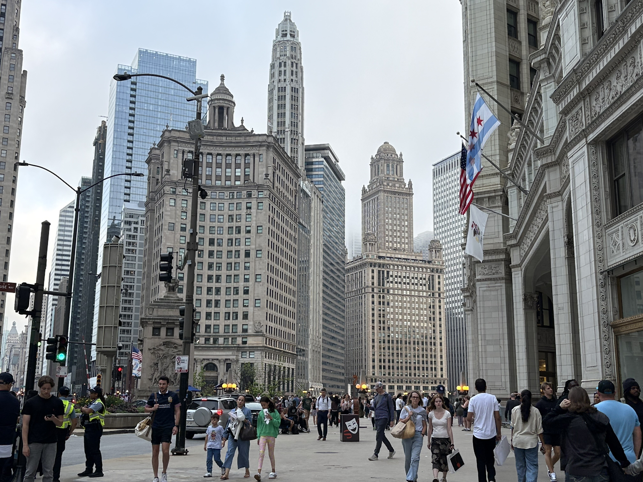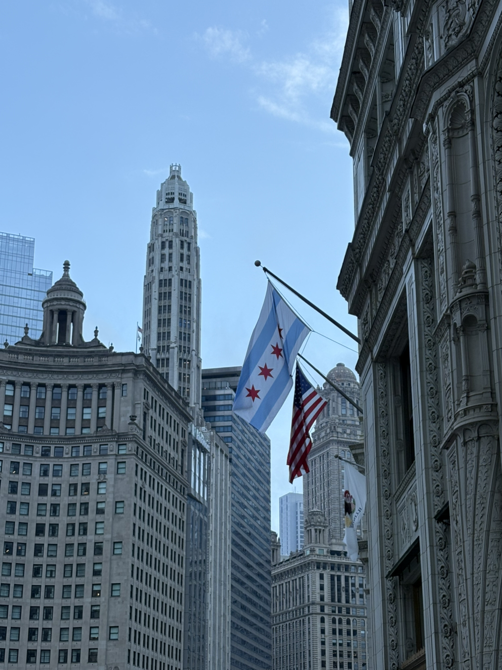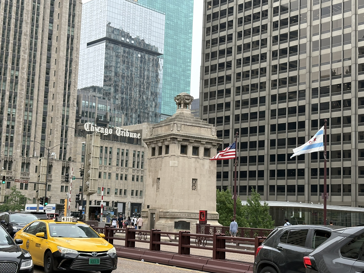 웅장한 건물 숲 사이 다리 위로 성조기와 시카고시 깃발이 펄럭이는 모습이 이 부근이 시카고의 중심임을 알리는 듯했다.