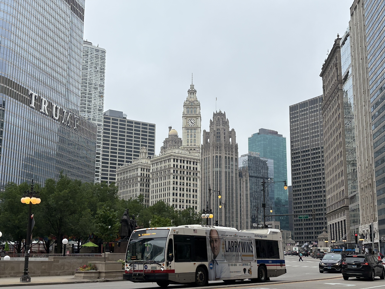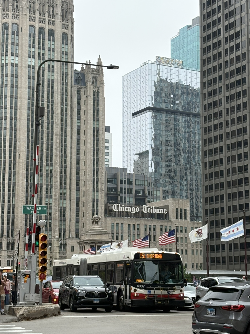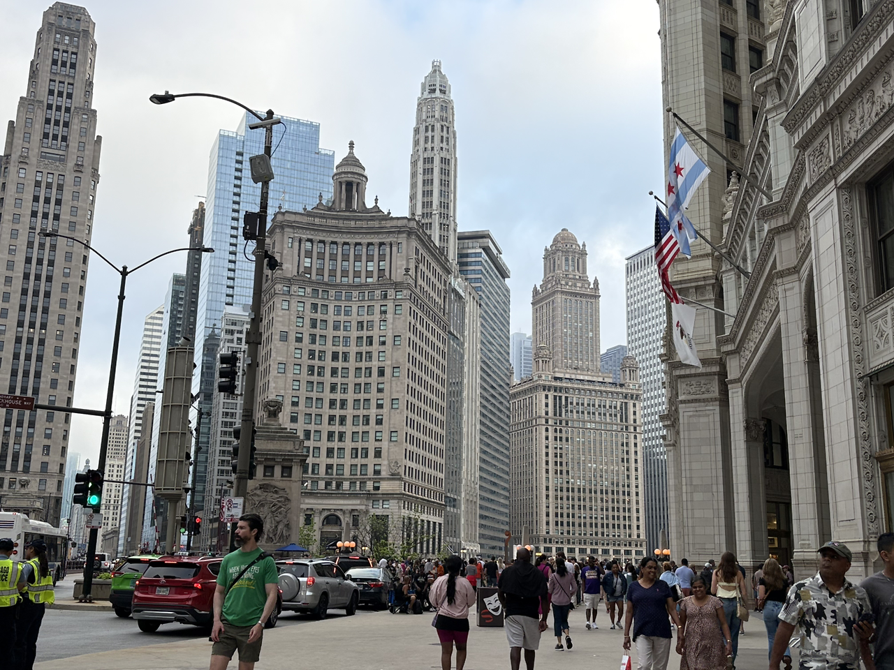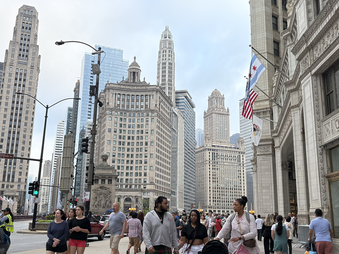 웅장한 건물 숲 사이 다리 위로 성조기와 시카고시 깃발이 펄럭이는 모습이 이 부근이 시카고의 중심임을 알리는 듯했다.