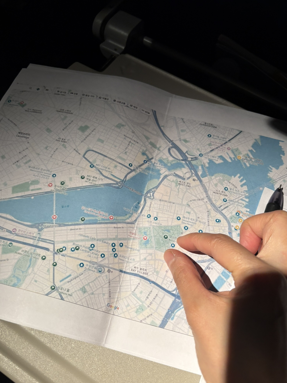 비행기에서 심심하면 보려고 지도를 인쇄해 왔는데 확대하려고 두 손가락을 대고 벌리고 있던 나,,,
