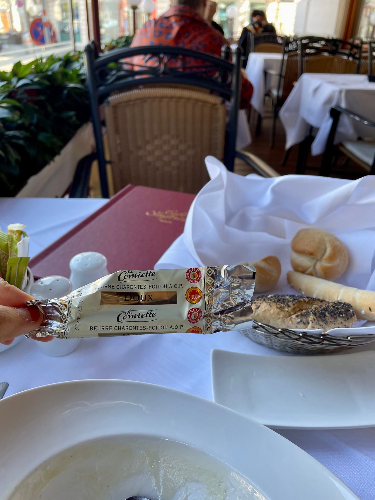 담당 서버가 수프와 함께 빵과 버터를 가져다 주기에 나는 빵을 별도로 주문하지 않았다 하니, 프리라면서 식사에 포함되어 있다고 했다.