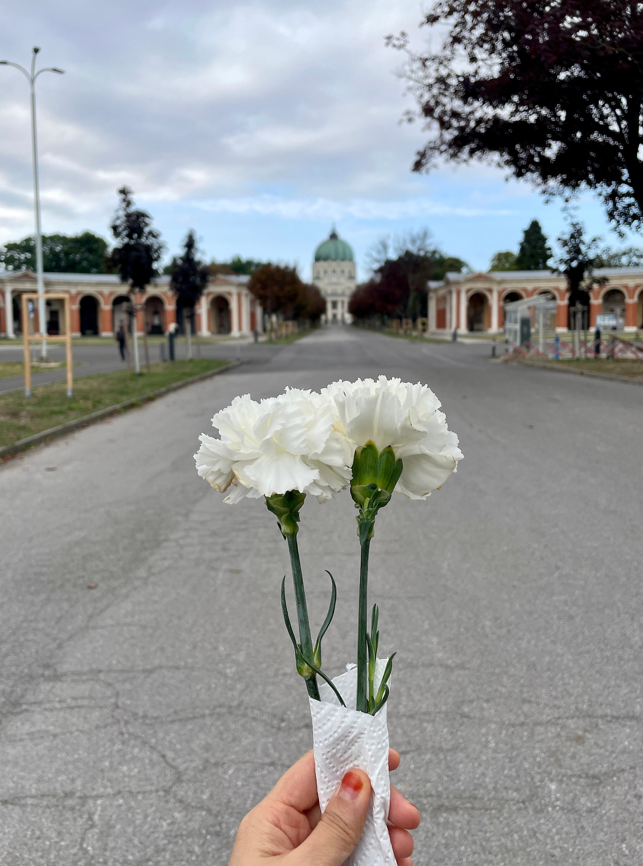 드디어 정문을 통해 밖으로 나올 수 있었고 좋아하는 두 분을 위해 하얀 카네이션을 두 송이 샀다.