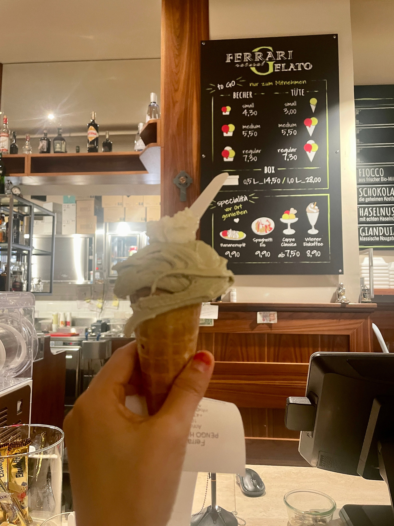 피스타치오 맛을 시켜 봤는데 녹진하고 고소한 콩가루맛에 피스타치오 향이 은은하게 나서 맛있었다.
