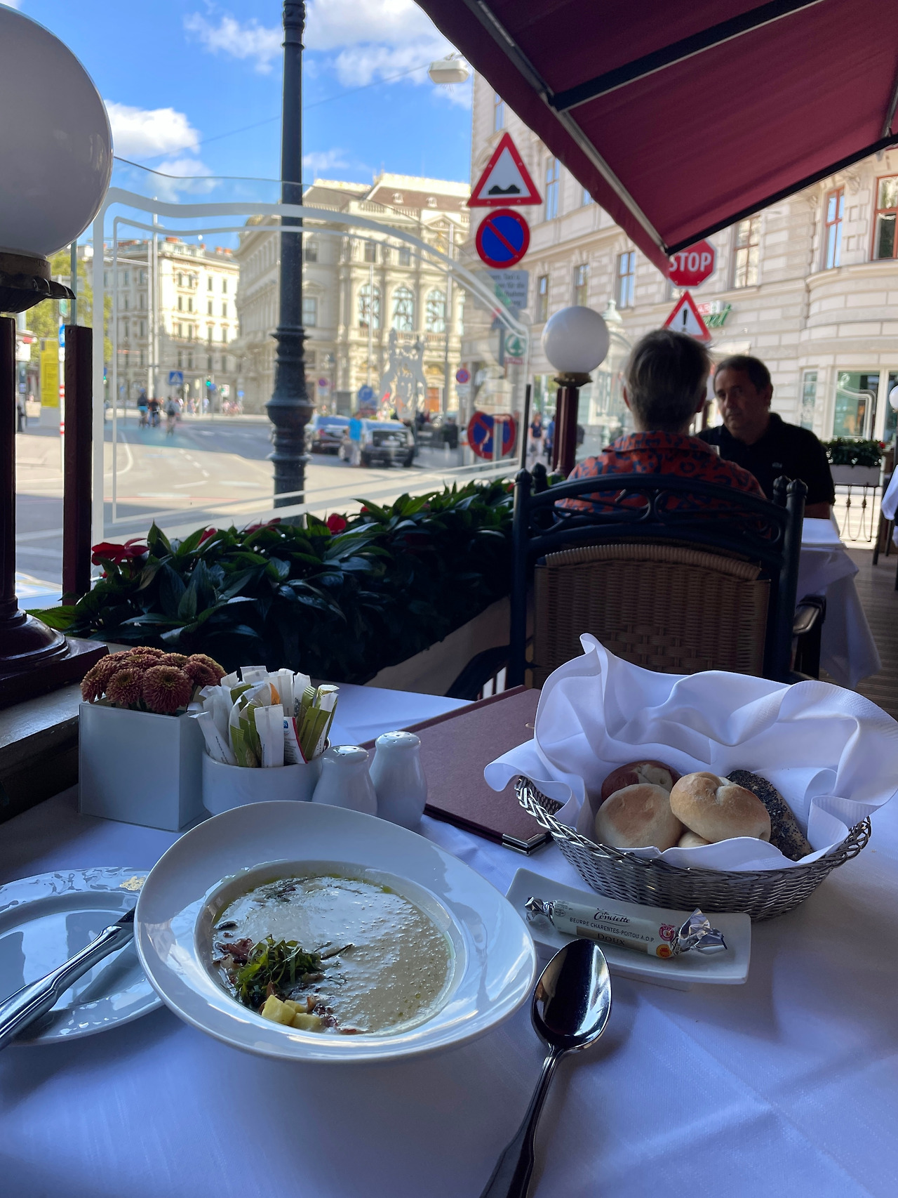 날이 약간 쌀쌀해서 따뜻한 수프와 함께 독일에서 제일 좋아하는 디저트인 압펠슈트루델을 시켰다.
