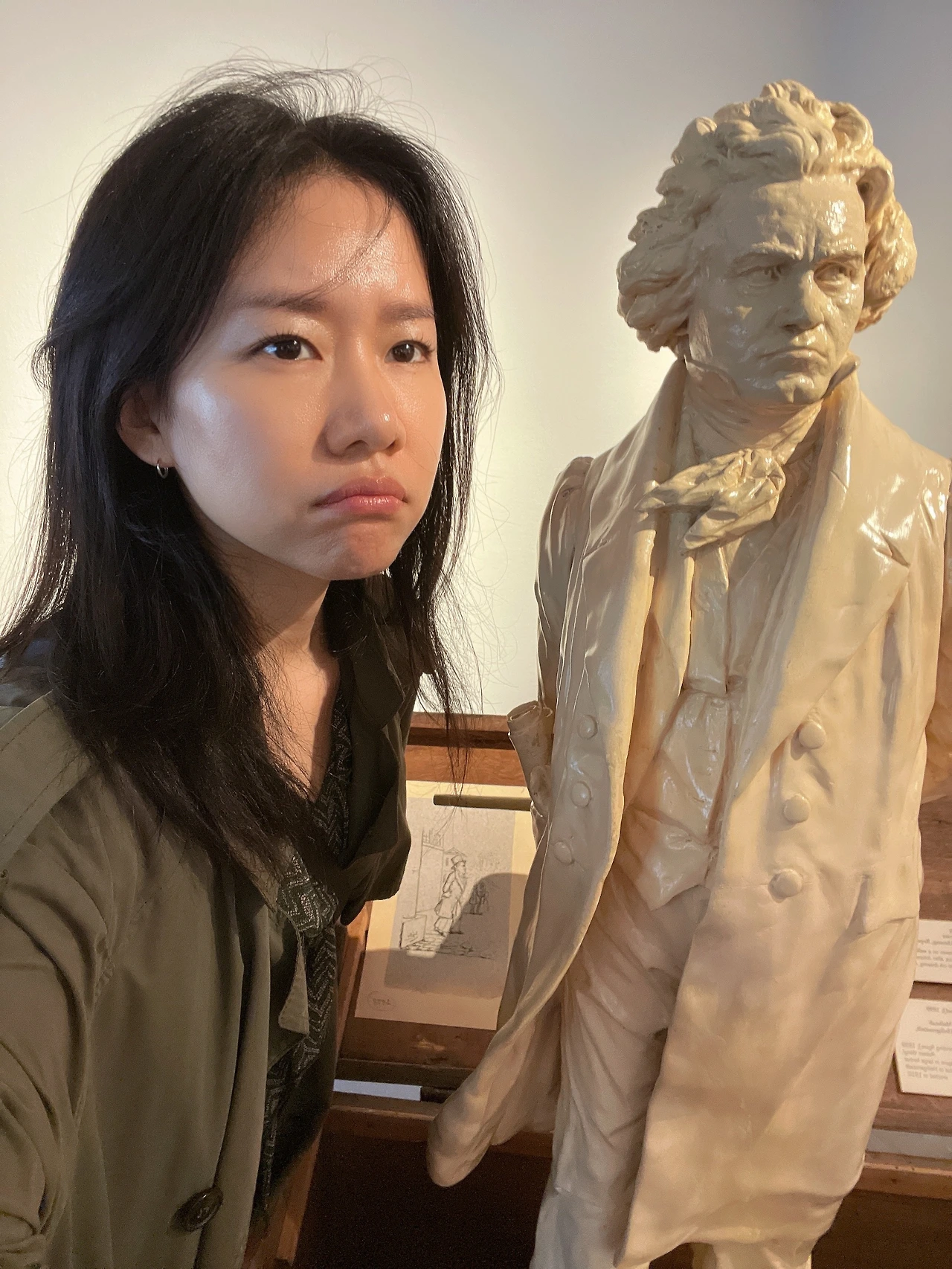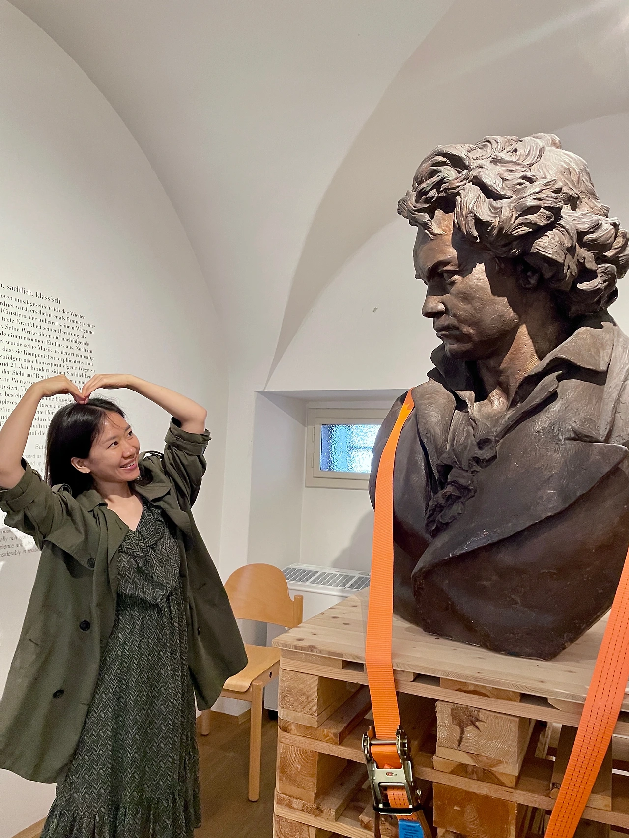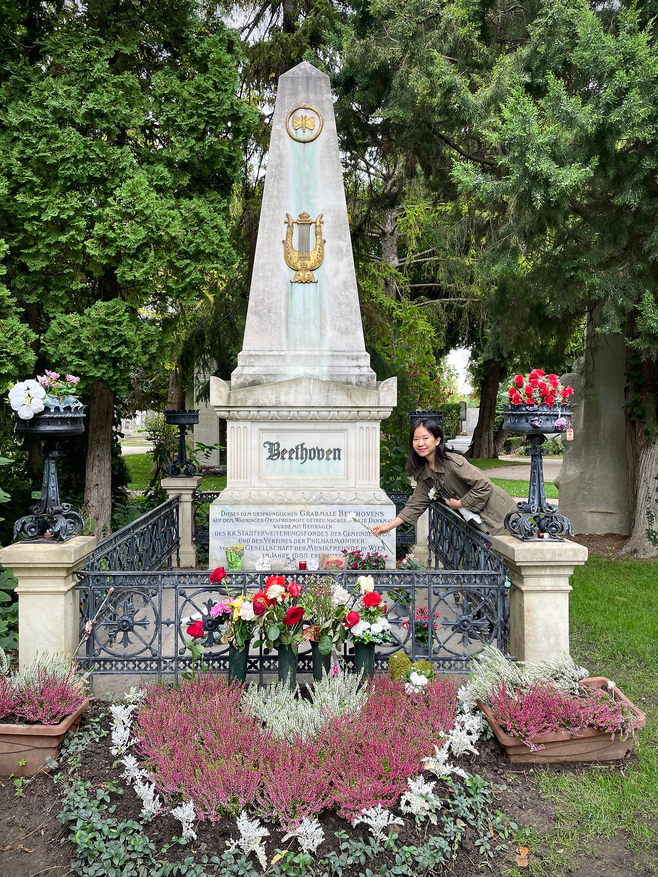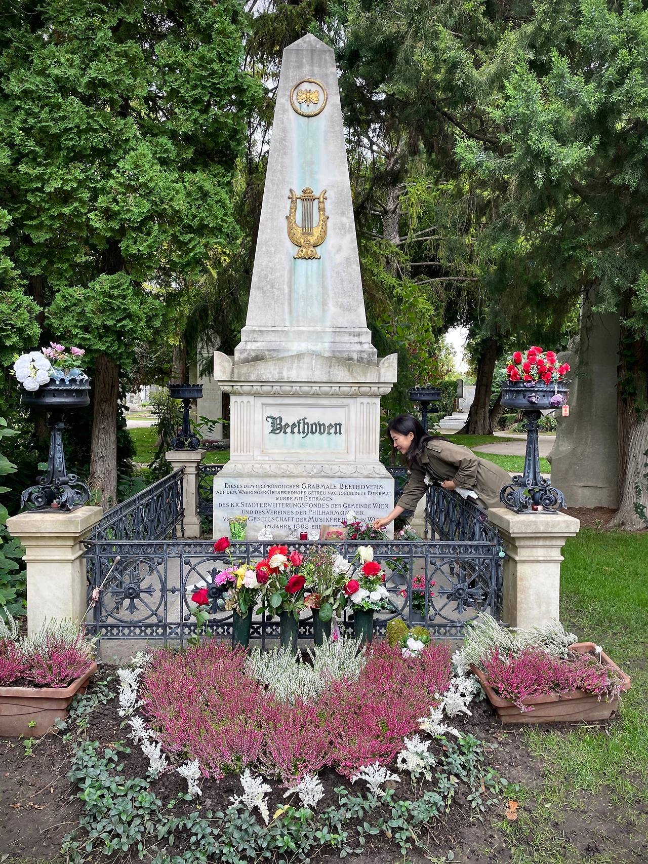 천천히 둘러보다가 산책하는 분이 계셔서 베토벤께 헌화하는 사진을 부탁했더니 꽃 나머지 한 송이는 누구 것이냐며 그것도 찍어주겠다고 하셨다. 쏘 스위트.