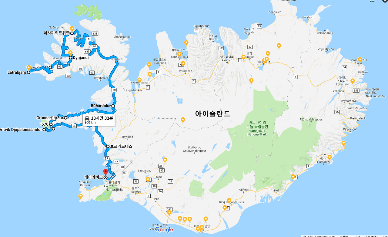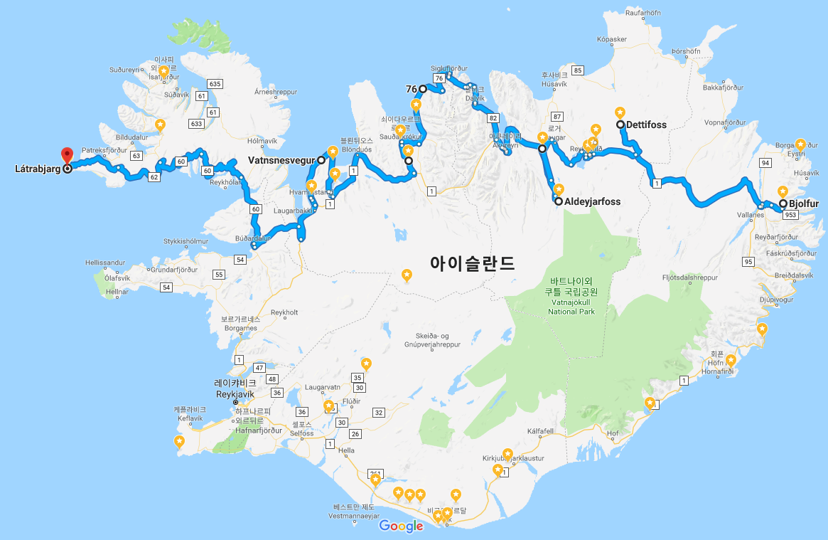 이렇게 해야만 10박 일정에 북서부 지역 (라트라뱌르그, 이사피외르뒤르의 피요르드 해안)을 넣을 수 있게 됩니다.