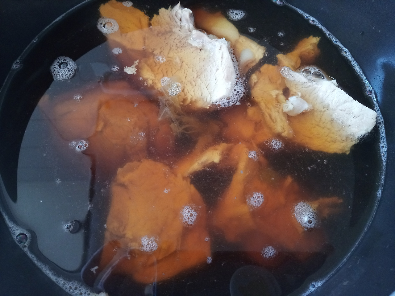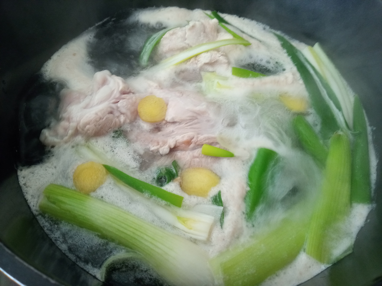 ※ 돼지고기 (삼겹살 or 앞다리살) + 대파 + 생강 + 물 (1시간 30분) → 두툼하게 자른 고기 + 가쓰오부시 육수 + 청주 + 간장 + 설탕 (1시간 30분)