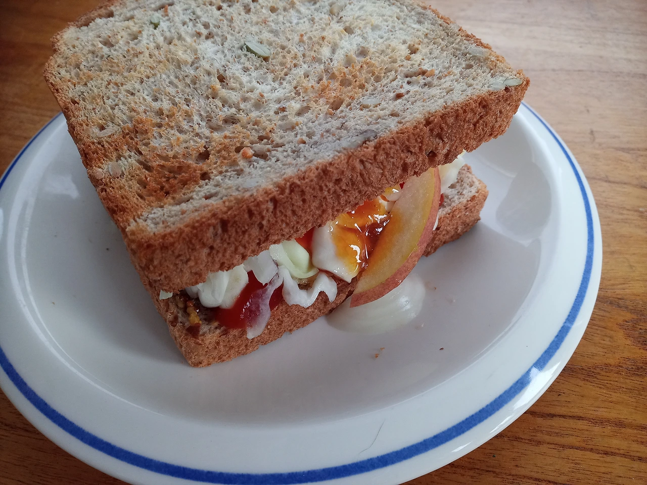이 요리의 장점은 여기서 그치지 않는다. 모두가 알듯 토스트라는 음식이 어떤 정석이 있는 것은 아니다. 여기 내가 써놓은 재료들도 그저 냉장고에 주로 있는 것들일 뿐, 무엇이든 추가하거나 빼도 크게 상관은 없다. 복합된 맛이 변화될지는 모르겠으나 어떻게 해도 웬만하면 다 맛있다. (하지만 계란 프라이와 양배추, 잼은 필수라고 말해두고 싶다. 적어도 이 셋이 있어야 '길거리' 토스트라 할 수 있다. 그리고 실제로 이 셋만 넣고 먹어도 맛있다.) 그런 토스트의 장점을 십분 살려 좀 더 좋은 재료, 독특한 재료들을 더 추가한다면 이 음식은 '길거리'라는 말이 무색할 정도로 풍성하고 다채로운 맛의 경험을 선사하는 '요리'가 된다. 내가 제시한 레시피로만 따져보더라도 그렇다. 케첩과 잼, 마요네즈와 치즈가 있어 달고 느끼한 맛이 메인이라고 할 수 있겠지만, 여기에 디종 머스터드를 추가하면 신 맛이 더해지면서 맛의 풍미가 갑자기 달라진다.(그냥 머스터드도 좋지만 이왕이면 '디종 머스터드'를 추천한다.) 대개 '신맛'은 맛 중에서 선호하지 않는, 때로는 불편하게 취급받을 때가 많지만(나 또한 신맛을 불편해하는 편이다), 적당히 신맛이 섞이게 되면 맛의 레이어가 하나 더 겹쳐지면서 갑자기 입체적이고 고급스러운 맛을 즐길 수 있게 된다. 그래서 먹다 보면 '아니, 길거리 토스트가 왜 이렇게 맛있는 거지?', '먹으면 먹을수록 맛있네 이거'라는 생각을 하게 된다. 여기에 사과나 딸기 같은 과일류가 추가되게 되면... 이건 뭐 길거리가 아닌 레스토랑의 음식이 되고 만다.(아보카도나 할라피뇨, 에멘탈이나 고다치즈 등을 곁들인다면.. 말할 필요가 없겠지.) 이렇게 얘기하다 보니 뭔가 특별한 재료와 소스를 준비해놔야 할 듯 하지만, 다시 처음으로 돌아가 이 요리의 장점은 그냥 집에 있는 재료만으로 간단하게 해도 충분히 맛있다는 점이다. 재료와 소스를 몇 가지 생략한다 해도 여전히 맛있으며 먹을 때마다 항상 이렇게 되뇌이게 되는 것이다.