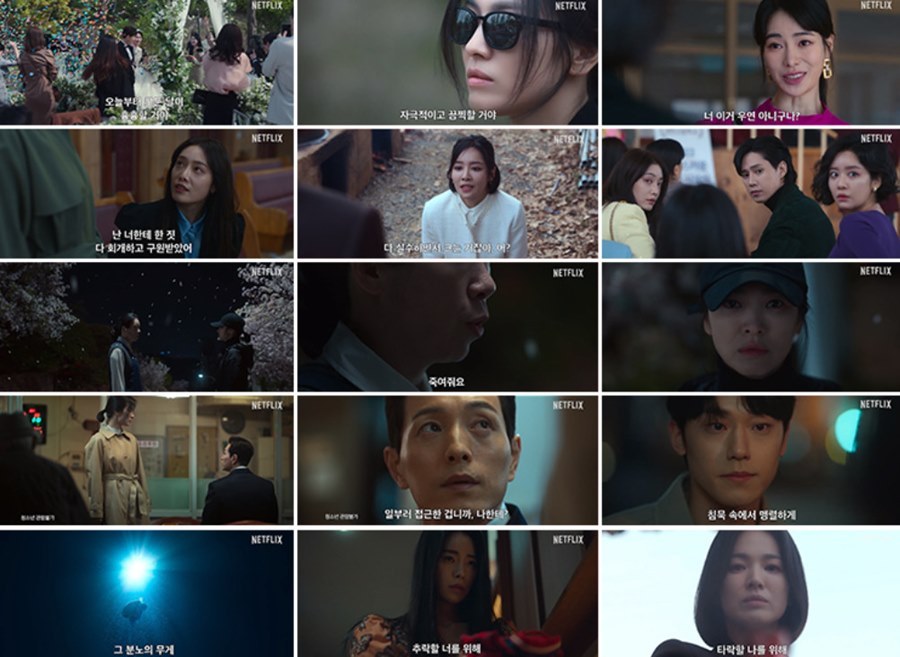송혜교는 전작 『지금 헤어지는 중입니다』의 실패를 딛고(흥행 면에서만이 아닌 작품 면에서도 그렇다), 멜로가 아닌 복수의 화신으로 완벽하게 재기하는 듯하다. 그녀가 멜로보다는 장르물, 특히 이런 깊고 센 캐릭터를 수용한 건 탁월한 선택이 아니었을까 생각해본다.(그녀의 오랜 팬으로서 용감한 선택에 손을 들어 박수를 보내고 싶다.) 설명할 수 없는 묘한 분위기를 가진 마스크와 연민을 자아내는 동공과 눈빛은 '문동은'이라는 역할의 상처와 아픔을 증폭시켜 준다. 심지어 어쩔 수 없이 복수라는 소용돌이에 휘말린 처연한 운명과 그 가운데에서도 남아있는 역시 어쩔 수 없는 인간애를 모두 담는, 깨져버렸지만 단단하게 이어붙인 그릇의 이중적 측면을 충분하게 소화한다. (개인적으로 그녀의 연기와 캐릭터의 케미가 가장 좋았던 드라마는 『남자친구』와 이 드라마 『더 글로리』가 아닐까 한다.)
