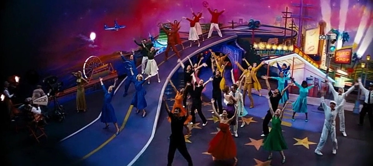 하나를 더 꼽아보자면, 이 영화의 마지막 부분 '영화 속 영화'가 등장하는 또 다른 판타지의 등장이다. 그 장면은 왜 삽입되었는가. 여러 각도로 살펴볼 수 있을 것이다. 일전에 TV 프로그램 '방구석 1열'에서 말했던 것처럼 수많은 이전 뮤지컬에 대한 오마주와 존경의 헌사로 읽을 수 있을 것이다. 그리고 그것이 가장 직접적이고 납득하기 쉬운 해석일 것이다. 하지만, 그뿐만은 아니라고 생각한다. 그 신(scene)들은 단지 판타지 하나가 더 삽입된 의미 이상을 담고 있다.